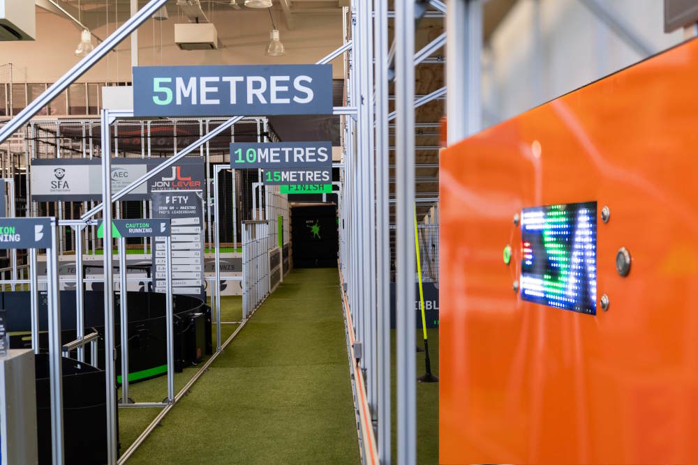 A linear wireless sprint system for acceleration, reaction, and speed challenges.